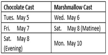 Syracuse Jr HighSyracuse Junior High Presents "Roald Dahl's Willy Wonka Jr." May 5,6,7,8,10 at 7:00 p.m. and a matinee on May 8th at 2:00 p.m. Seating will be arranged to accommodate social distancing and masks are required. Adults $7.00 Students/Children $5.00. Chocolate Cast: May 5, 7, and 8 (evening) Marshmallow Cast: May 6, 8 (matinee) and May 10