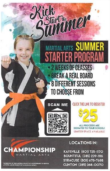 Bountiful ElementaryBOUNTIFUL ELEMENTARY FUNDRAISER WITH CHAMPIONSHIP MARTIAL ARTS * 2 Weeks of Classes * Break a Real Board * 8 Different Sessions to Choose From
