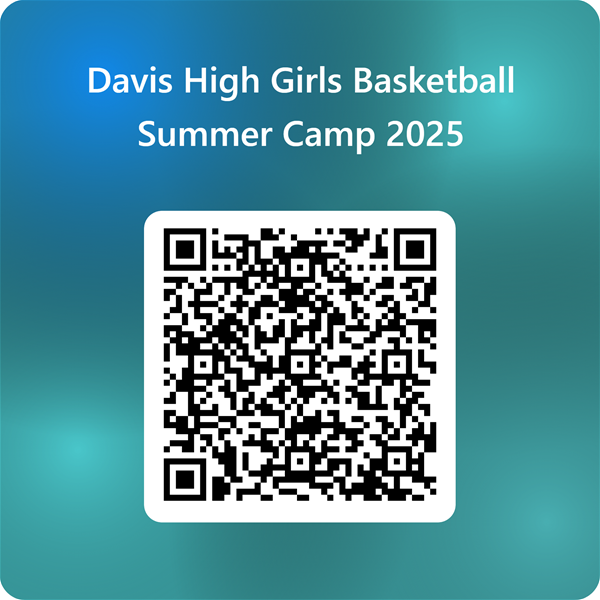 Davis High SchoolDavis High Girls Basketball Summer Camp 2025: June 9-12 @ Davis High (Monday - Thursday) 7th - 10th Grades: 8:30 am - 11:00 am. (Girls only - Main Gym) $80.00 K - 3rd Grades: 10:00 am - 11:30 am (Boys and Girls - Small Gym) $45.00 4th - 6th Grades: 8:30 am - 10:00 am (Boys and Girls - Small Gym) $45.00 Camp will start promptly at 8:30 am on June 9th & 10:00 am! Please register & pay prior to camp start time to make sure you receive a T-shirt. Camp fundraising funds used to pay camp coaches, camp t-shirt, camp snacks & awards. Any remaining funds contribute to equipment & supplies for DHS Girls Basketball program. Register with this QR Code: